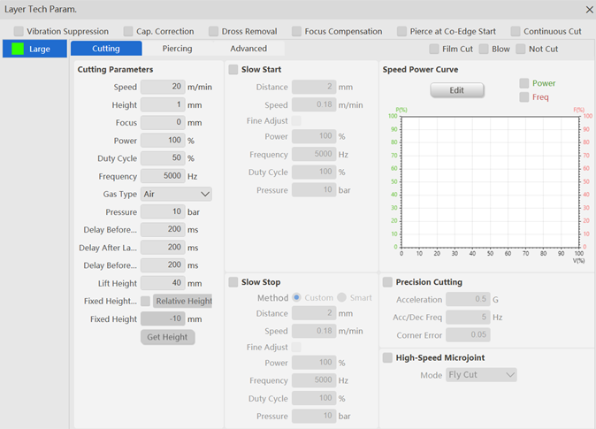 लेजर ऑन के बाद विलंब वह अवधि है जब कटिंग हेड चलना शुरू करने से पहले प्रतीक्षा करता है। यह पैरामीटर आमतौर पर गैर-छिद्रित शीट सामग्रियों पर लागू होता है, जहां सिस्टम पहले प्रीहीटिंग पूर्ण करने के लिए लेजर फायरिंग करता है और चलने से पहले प्रारंभिक कट पूरी तरह से छिद्रित होना सुनिश्चित करता है।