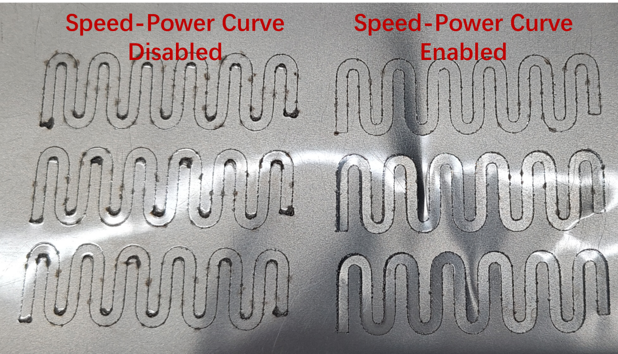 Большинство систем управления лазерной резкой предоставляют инструмент кривой скорость-мощность для удобства пользователя в согласовании взаимосвязи между ними.